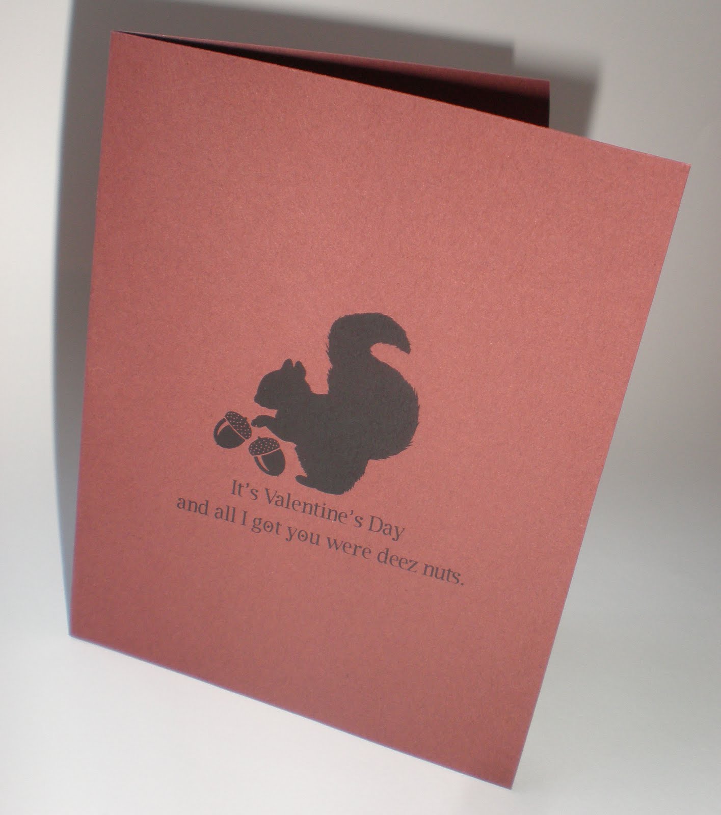 Feeling squirrely since you still don’t have a card or a gift for your Valentine? Not a problem, make your sweet heart a card, it’s cheap and easy (much like me). Plus you have the extra added value of giving someone something “handmade.” So if your wife complains that you never give her anything just tell her how you made this card with your own hands, you’ll get some tail for sure.