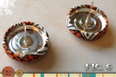 - Using the E-6000, put a dab of glue on the pad of the earring post and glue it to the center back of the button. Repeat this step with the second earring and let glue dry over night.