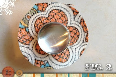 - Cut a fabric twice the diameter of your button. Since we are using .75″ buttons the diameter of the circle should be 3″. If you decide to make smaller or larger buttons, change the diameter accordingly